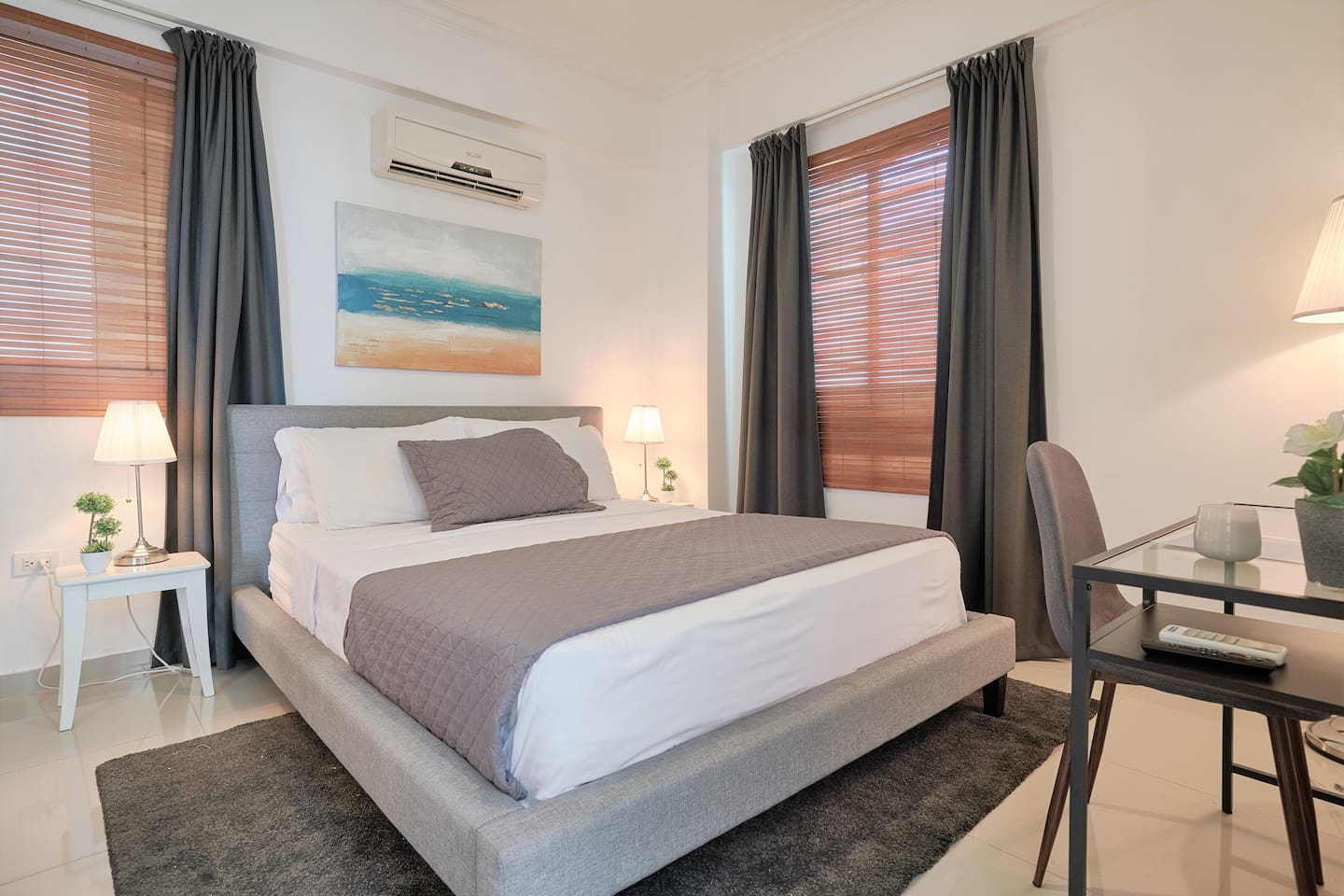 Fully equipped with all traveler’s needs. It is private, secure and located in a luxury and modern building, near the best restaurants shopping malls and hotels in the city center of Santo Domingo. Great street views, several leisure & sports areas in and around the building.