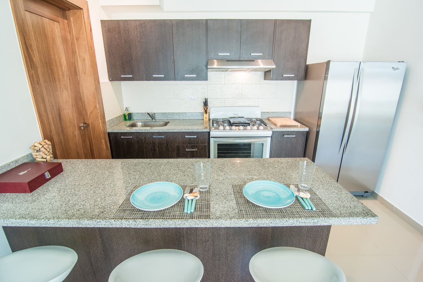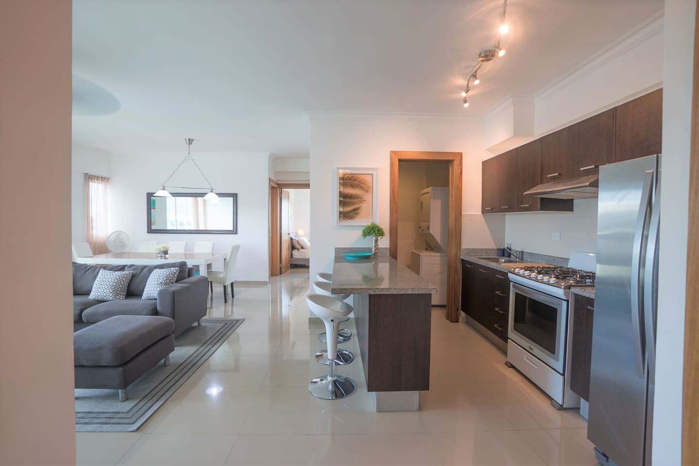 This luxury and comfortable two-bedroom apartment is fully equipped with all traveler’s needs. It is very quiet, private, secure and located in a luxury and modern building, near the best restaurants shopping malls and hotels in the absolute city center of Santo Domingo. Great city views, several leisure & sports areas in and around the building. The apartment comes with Two Bedrooms and a spacious living room with large open kitchen.