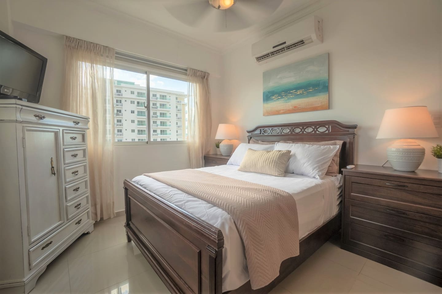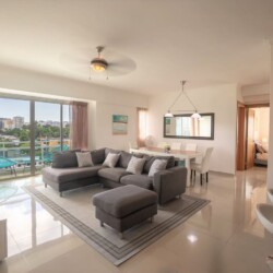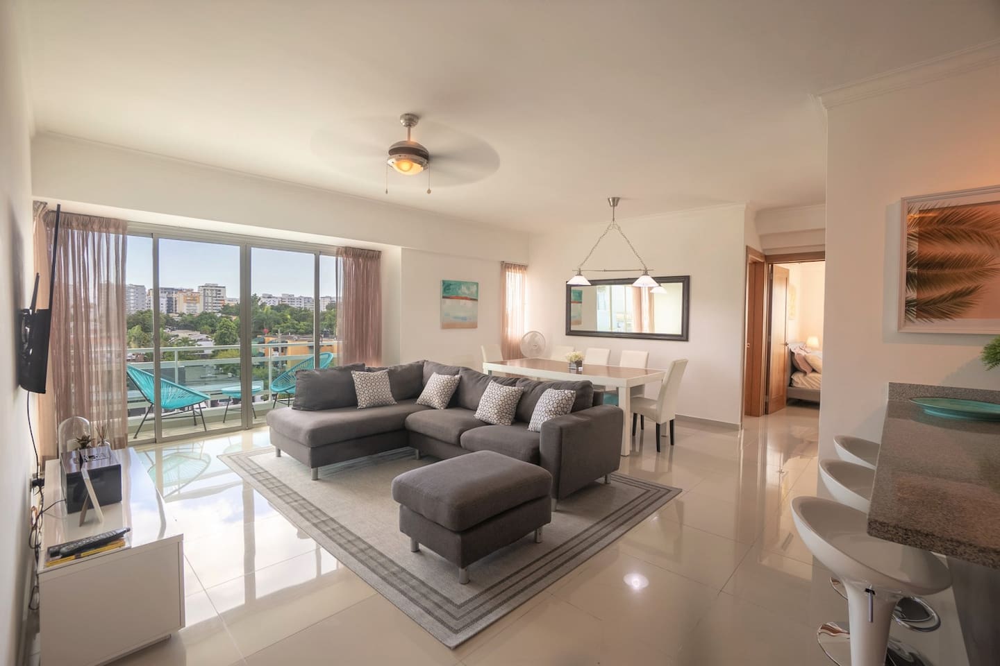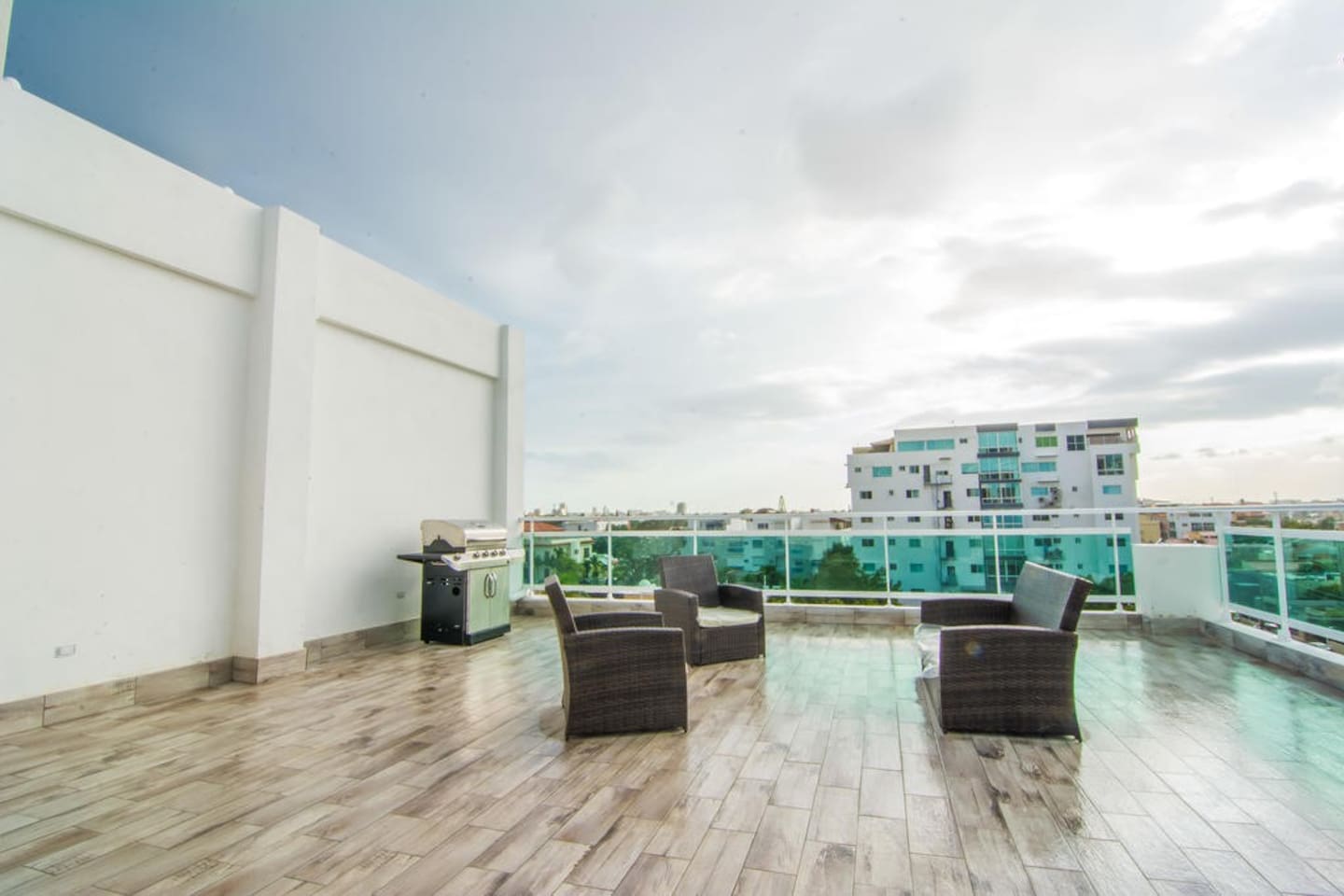 This Brand-New Luxury and Spacious 2-Bedroom Apartment is located in the City Center of Santo Domingo. Enjoy Amazing City Views from the Spacious and Comfortable Living Room with Open Fully Equipped Kitchen and Balcony with Beautiful City Views. The Apartment comes with AC’s, Fan’s, Three TV’s, Cable (1000+ International Channels & Movies), Fast WIFI, Sound System, Washer/Dryer, Private In-Building Parking and features a Shared Gym and Rooftop Terrace with Lounge Chairs and Barbecue.