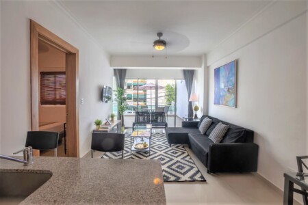 This Brand-New and Modern One-Bedroom Apartment is located in the BEST AREA of Santo Domingo’s City CENTER. Enjoy the Comfortable Living Room with Open Fully Equipped Kitchen and Balcony. The Apartment comes with AC’s, Fan’s, 58 INCH 4K SMART TV with NETFLIX and PLAYSTATION 4, FAST WIFI, SOFABED, Washer/Dryer, Private IN-BUILDING PARKING and features a SHARED GYM and ROOFTOP TERRACE with Lounge Chairs and BARBECUE. Walking distance from highlights, restaurants, malls, bars grocery stores, etc.
