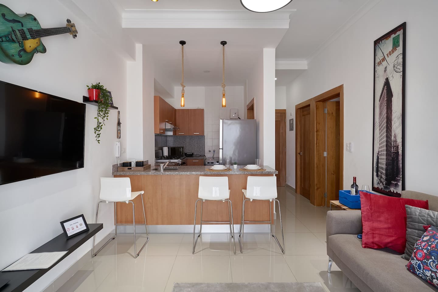 It’s a very comfortable Apartment with High Speed Internet, Smart TVs ready, a Comfortable sofa-bed, Washer / Dryer, Iron, Breakfast Bar, hot water and Air Conditioning in all spaces.
